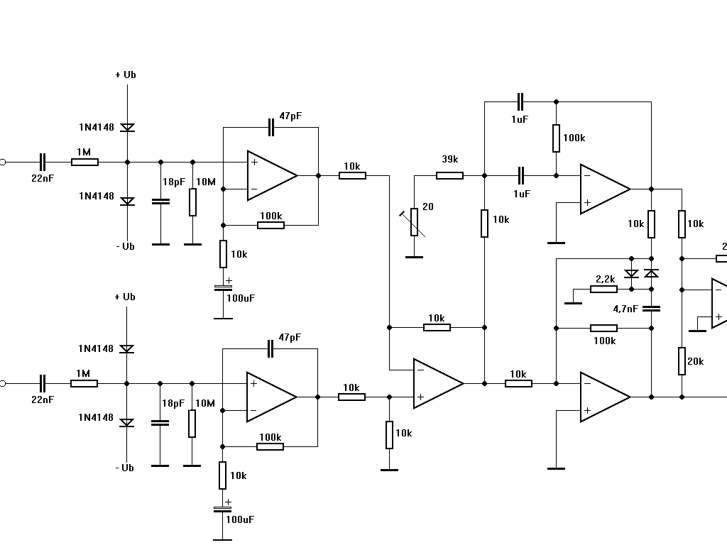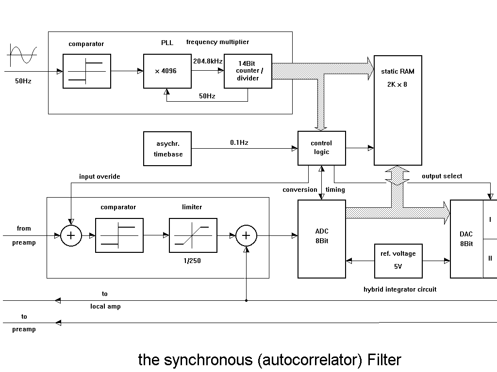 Comming up soon with more information about the VLF/ELF-receiver and the first recorded signals you can take a look on the actual circuit design of the input stage. The receiver is located at D64354 Reinheim/Georgenhausen and is still an object in progress. Using a active 2.5m pole antennae (just the initial length of the copper tube i found at my home side - without using a saw) with a FET-preamplifier and a total gain of 100, i have started a fight against the horrible humming noise (typically 5V without any care). The first step was to add a notch-filter to eliminate the 50Hz fundamental. So i could notice same whistlers in the night of November 9/10th, unfortunately without any recording equipment. Second i designed a synchronous digital-filter, cutting off all higher harmonics up to 20kHz (sampling rate 51.2kHz) and reduce the humm to practical zero. But employing a 8-Bit converter, i was hit by the residual white noise appeared simultanously if the humm vanished. So i have to put more parts into this device to fit the goal (read as 16Bit resolution). The work will go on!